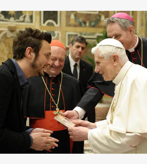 Bento XVI durante encontro com o grupo de rock "The Sun"